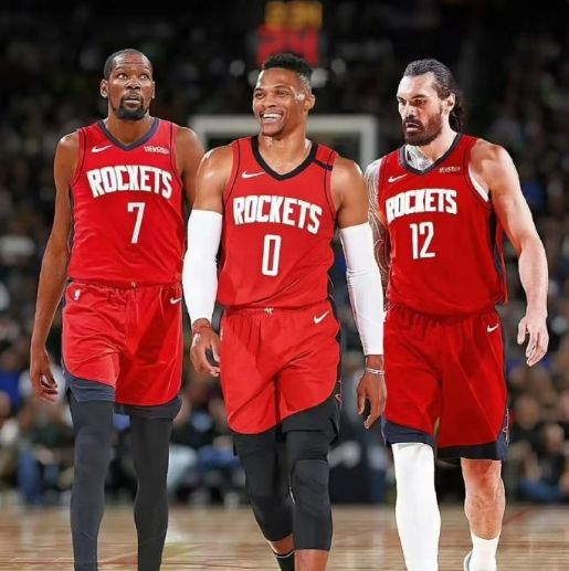 至于威少曾经短暂效力过火箭一个赛季,当时与昔日雷霆队友哈登搭档,但遗憾止步西部半决赛。威少在雷霆时期曾经与杜兰特、亚当斯搭档过,如今威少通过社媒点赞了火箭官推发布的这张照片,自然是耐人寻味。